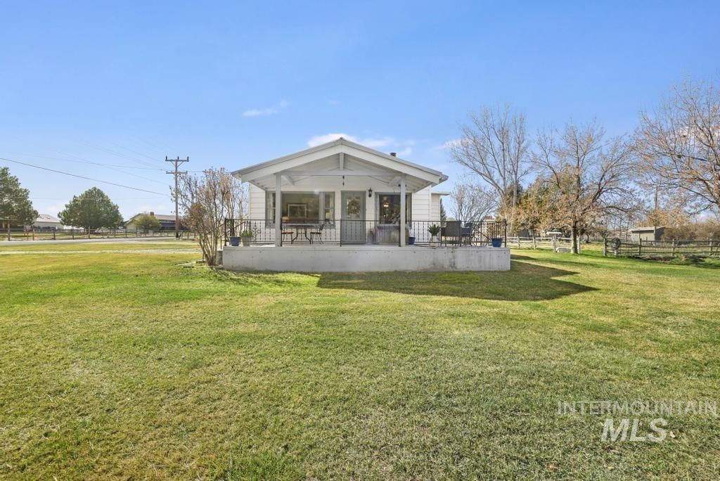 Country living at its best! This beautiful 5-bedroom plus office, 2-bath home sits on 2 acres and includes 2 water shares. The main level features 3 bedrooms, a cozy wood stove, and a spacious dining area filled with natural light from large windows. The kitchen offers plenty of storage with all appliances included. The lower level offers a separate entrance, a large family room with pellet stove, kitchenette, laundry area, and an expansive pantry, ideal for multi-generational living or added flexibility. Enjoy stunning sunsets from the covered porch, and take advantage of the fully fenced acreage ready for animals. Included outdoor features are squeeze chute, shed, lean-to, corral, firewood, and extra wood stove pellets. In 2026, electrical has been updated throughout the home.